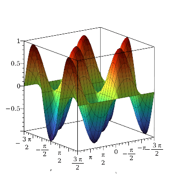 plot3dsinxcosy,x=32π..32π,y=32π..32π,colorscheme=Turbo