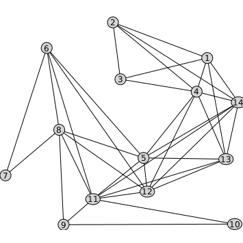 VGGraph 1: an undirected graph with 14 vertices and 36 edges