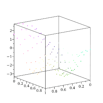 If the grid=true option is given, then the points are located in a square d-dimensional grid, at coordinates equally spaced between 0 and 1. As a consequence, there will be kd points in total, for some k. Maple chooses k as n1d; consequently, the number of points generated may be smaller than n. For example, if d has its default value of 2, then the number of points will be reduced to the largest perfect square that is not greater than n.