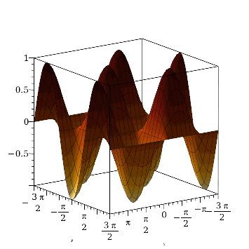 plot3dsinxcosy,x=32π..32π,y=32π..32π,colorscheme=BeerSRM