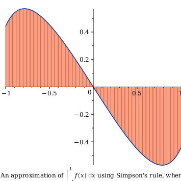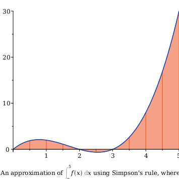 ApproximateIntxx2x3,0..5,method=simpson,output=plot
